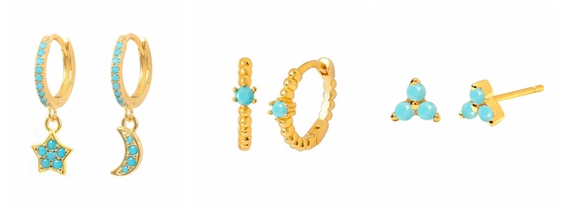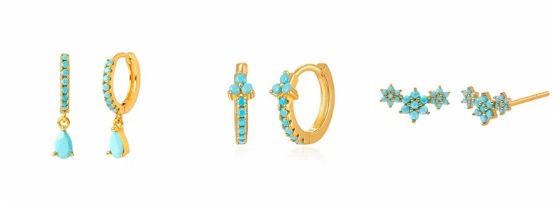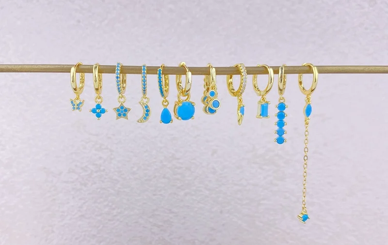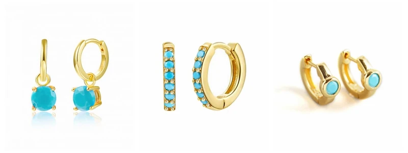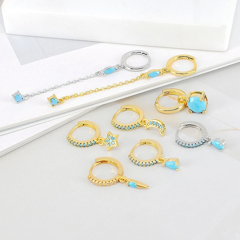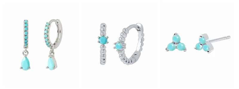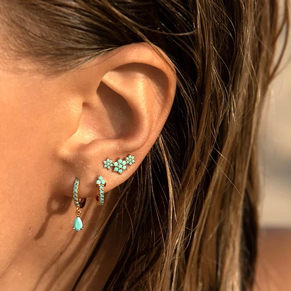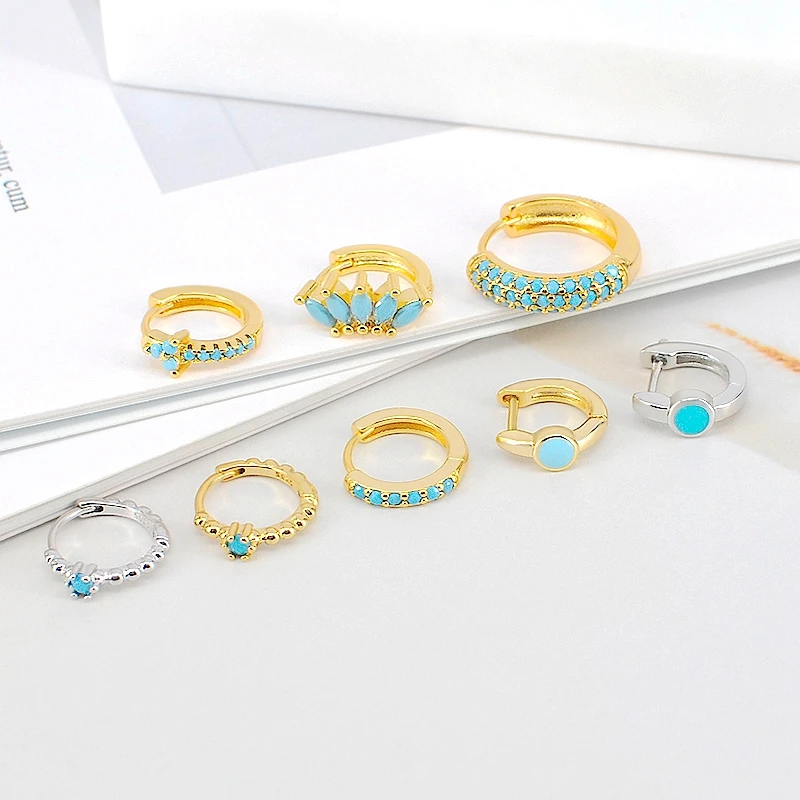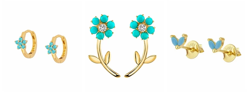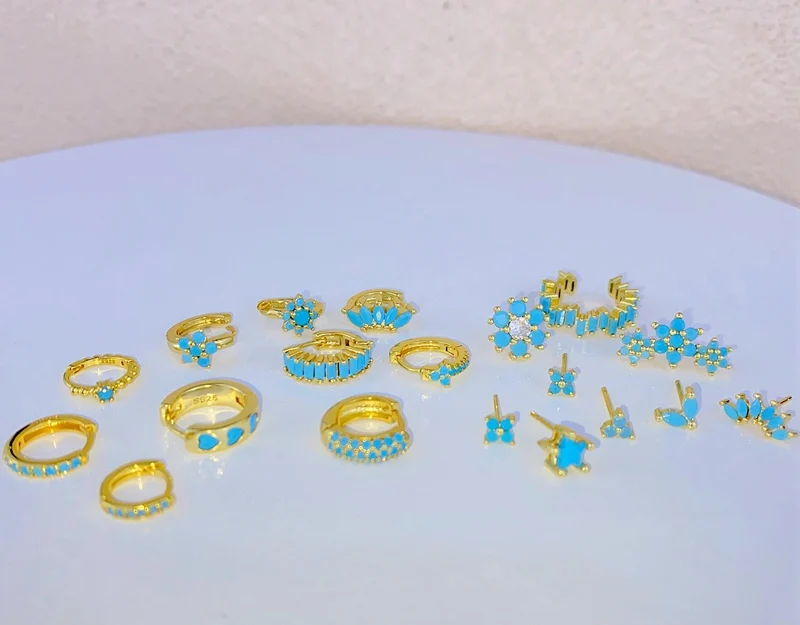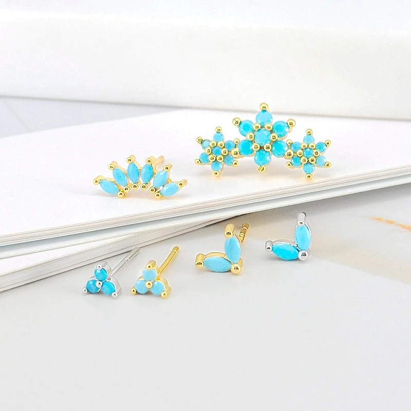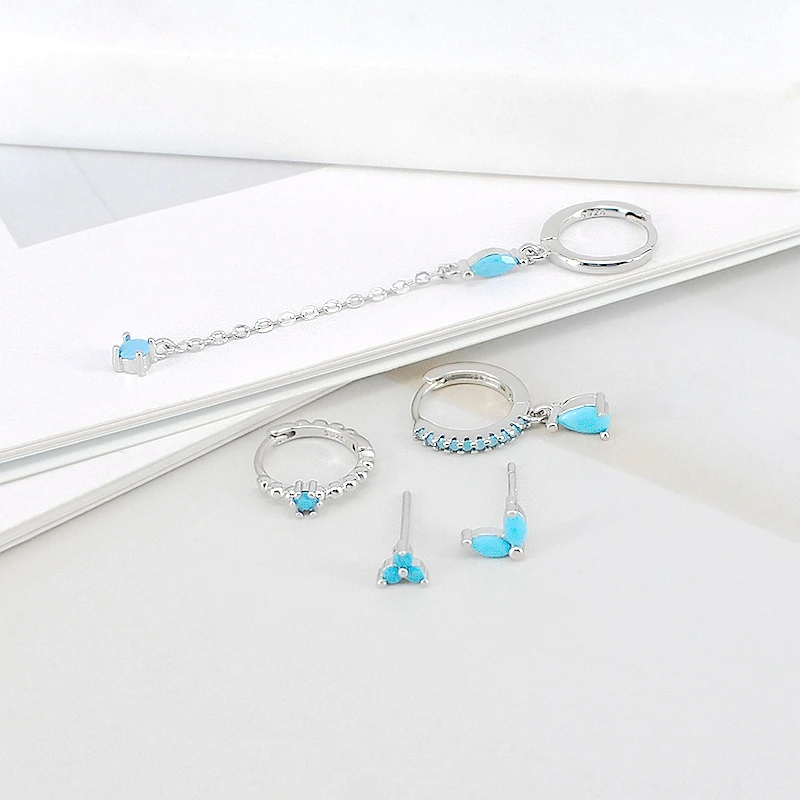 925 Sterling Silver Needle Turquoise Flower Earring Hoop Premium Blue Hoop Earrings for Women Wedding Luxury Jewelry Girls Gifts