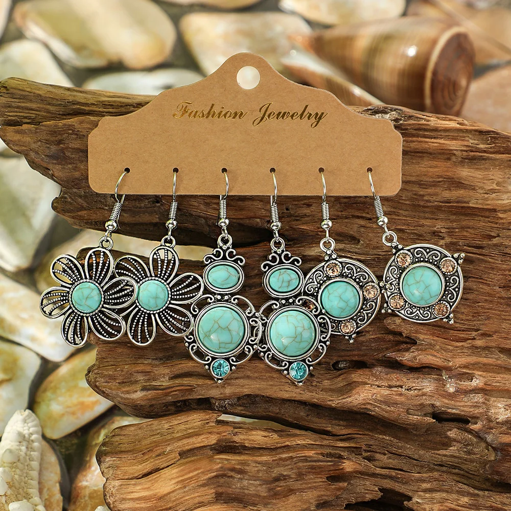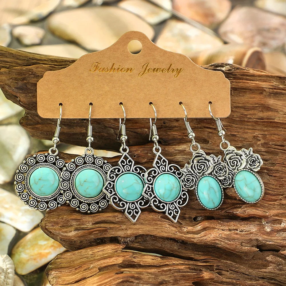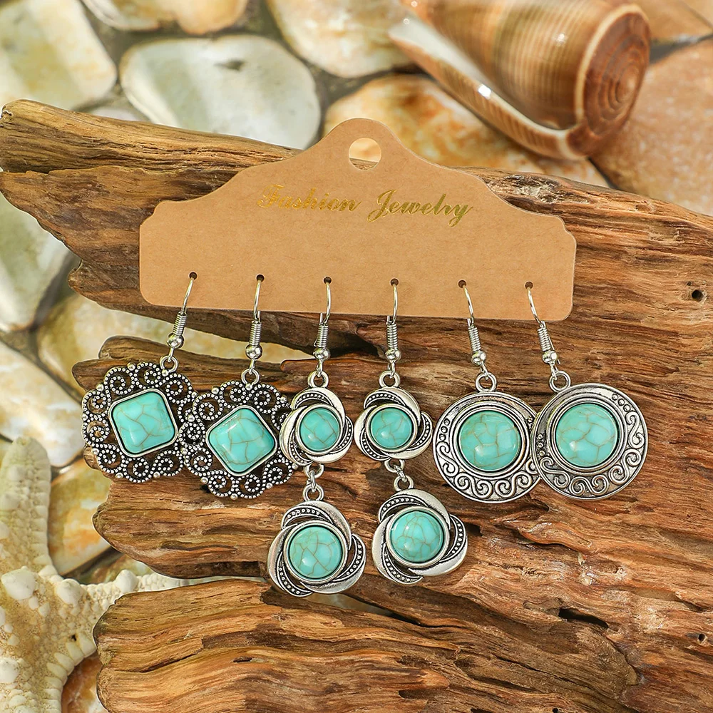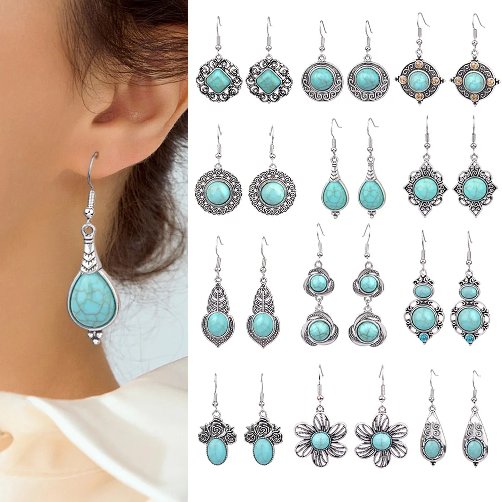 Ethnic Style Drop Earrings with Turquoise Boho Classy Party Decors Daily Wear Dainty Chic Eardrop Easy Matching Outfits