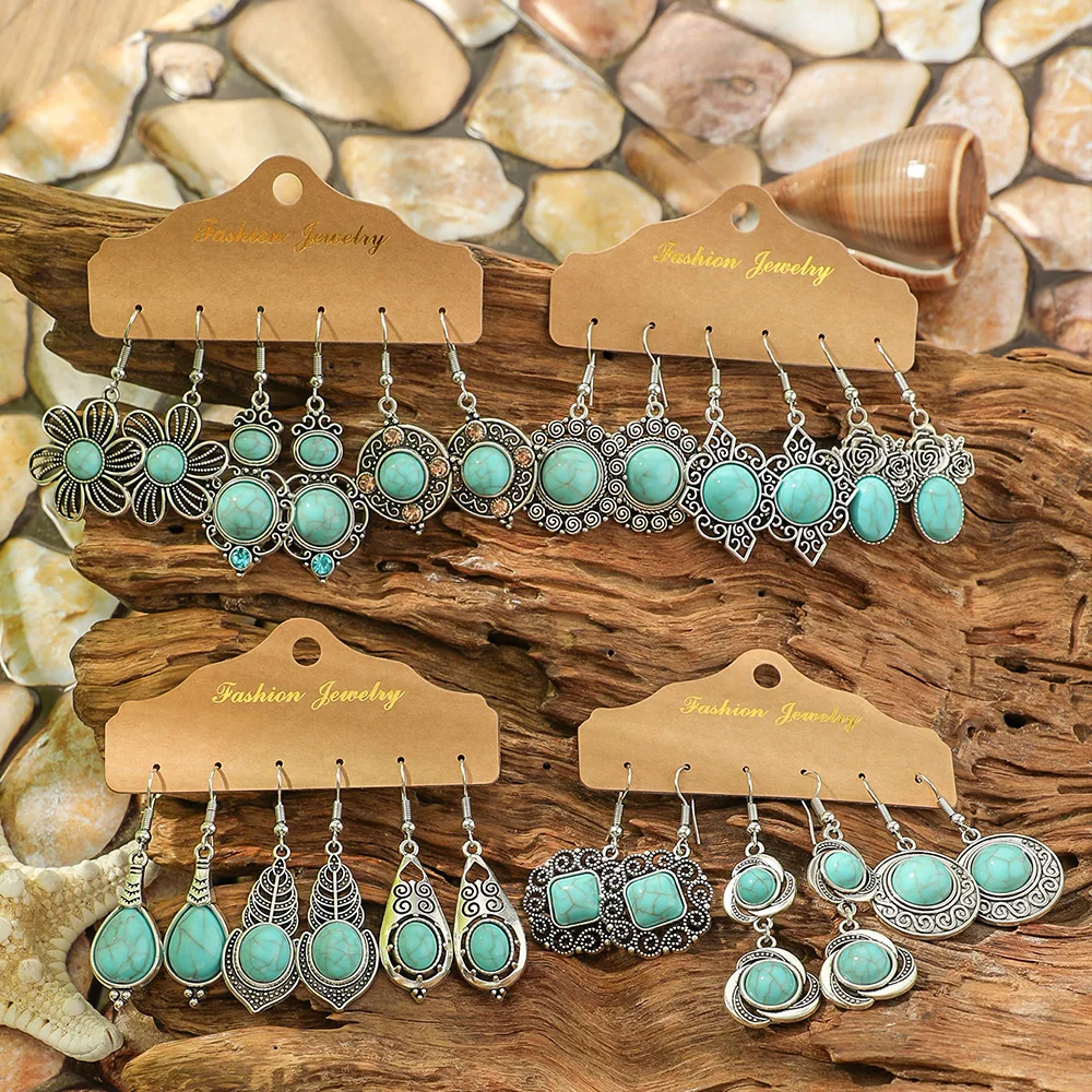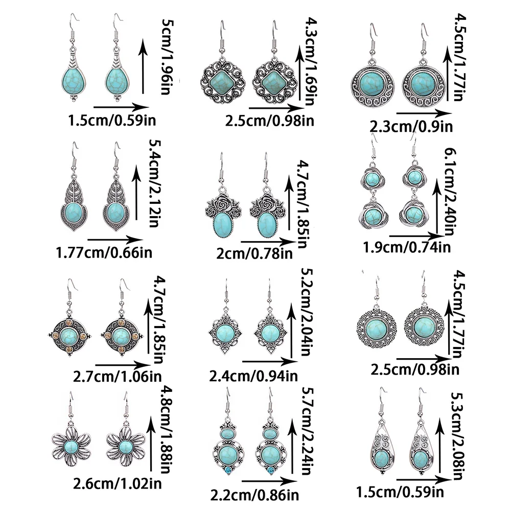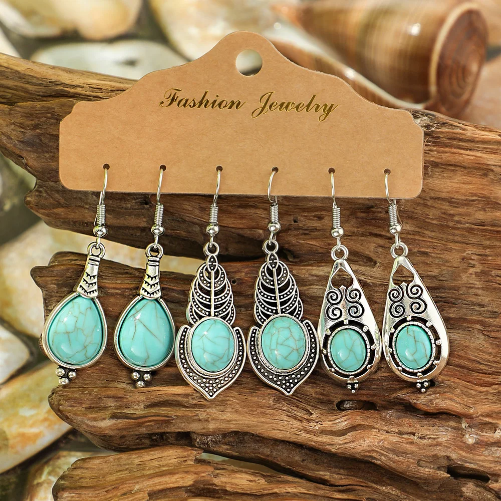 Ethnic Style Drop Earrings with Turquoise Boho Classy Party Decors Daily Wear Dainty Chic Eardrop Easy Matching