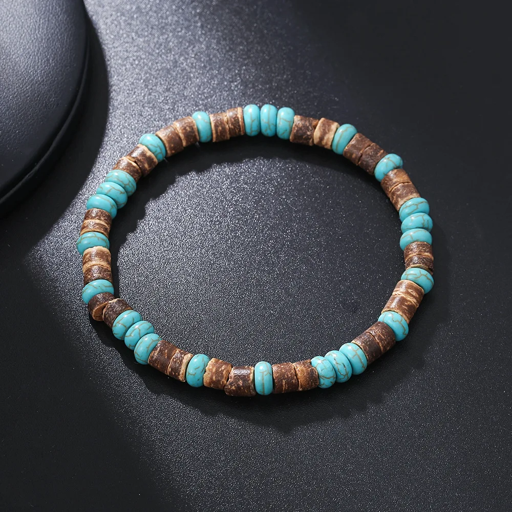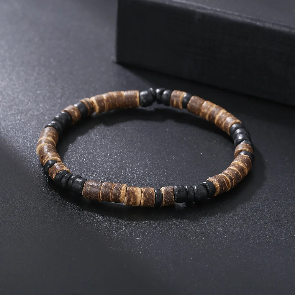 Hot Selling Vintage Beaded Bracelets For Men Skull Head Pine Stone Wood Pearl Coconut Shell Beaded Men's Bracelets Gifts