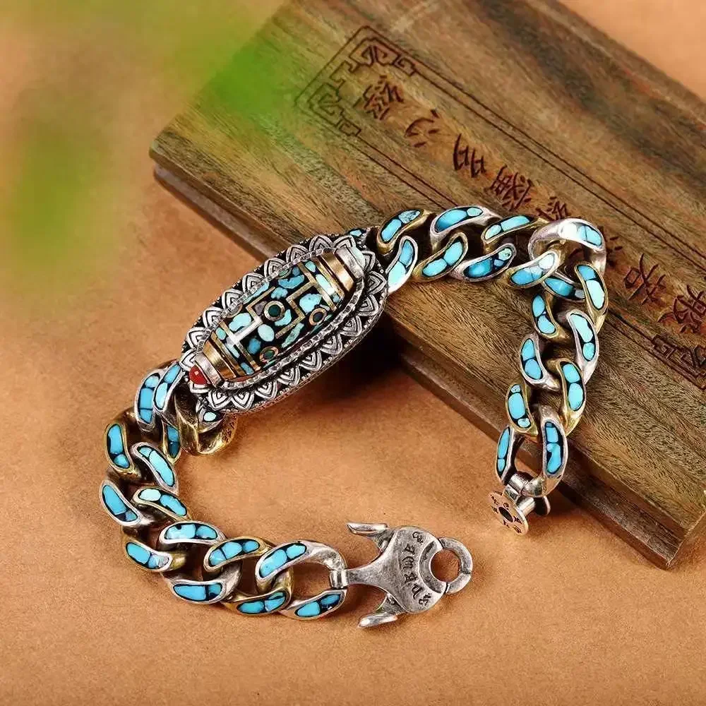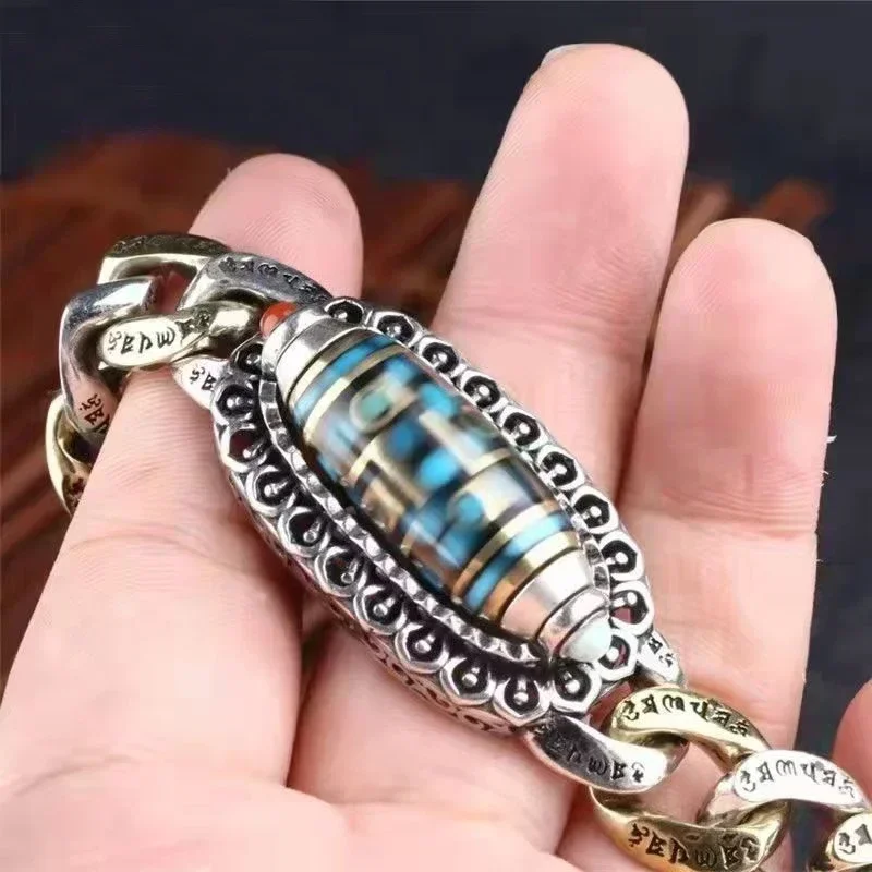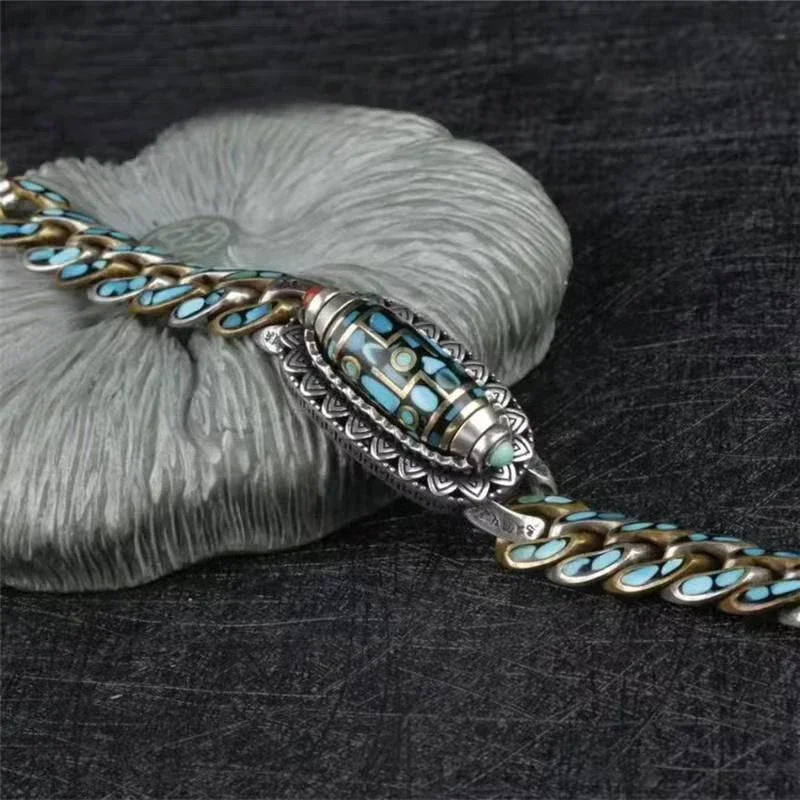 New Silver Color Men's Bracelet Personality Retro Transfer Rotating Nine Eye Pearl Bracelets High-end Gift Fashion Jewelry