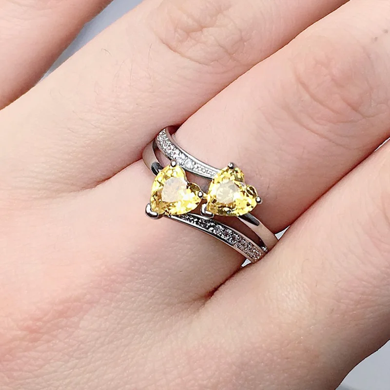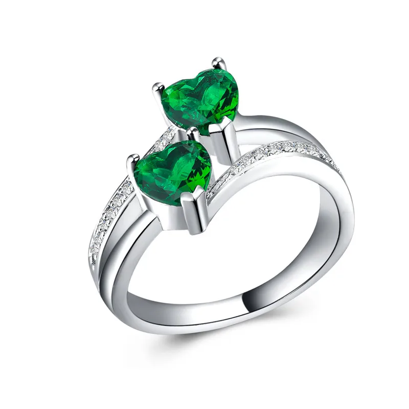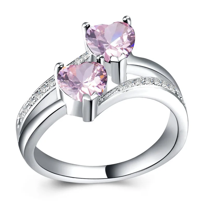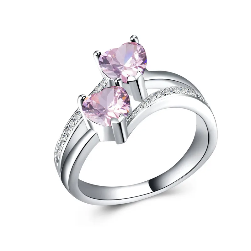 New Stylish Female Rings Silver-plated Double Heart-Shaped Cubic Zircons Ring