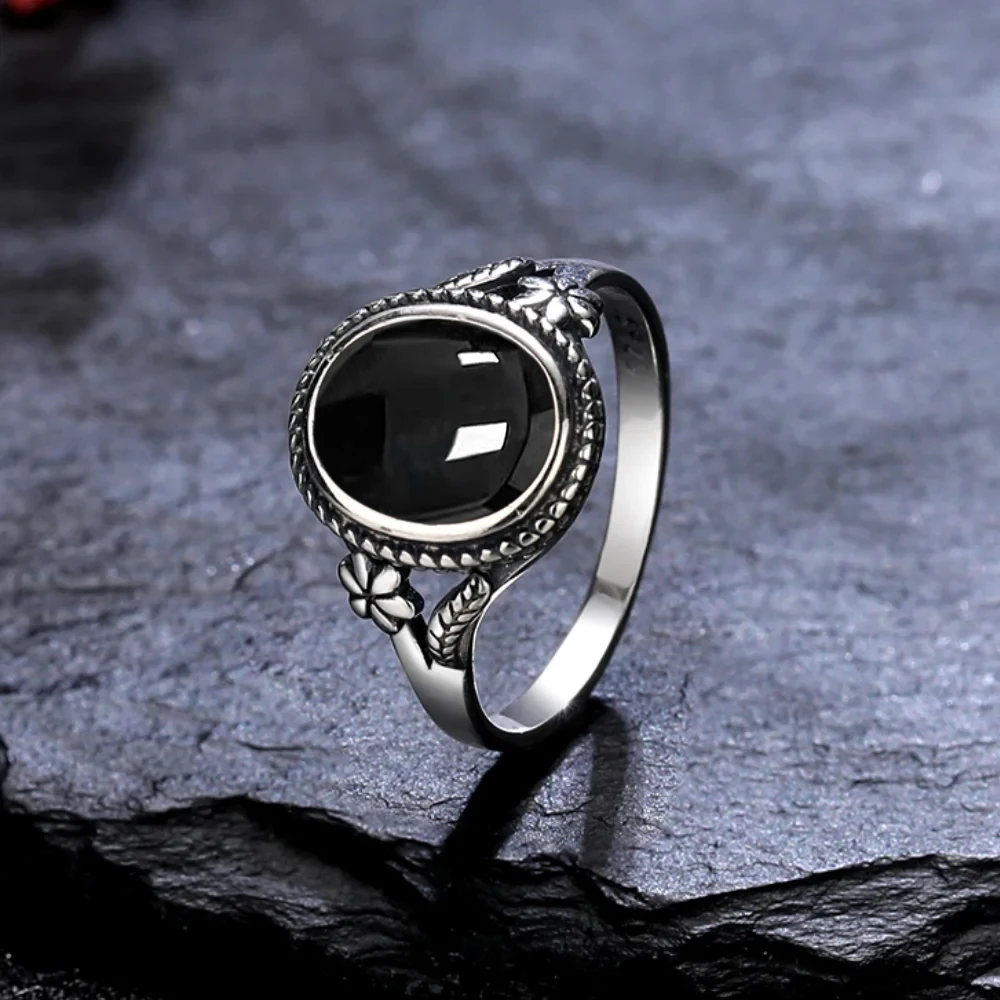 Vintage 925 Sterling Silver Natural Black Onyx 8*10mm Ring Flower Shaped Tiger's Eye Ring Fine Jewelry Finger Ring For Women